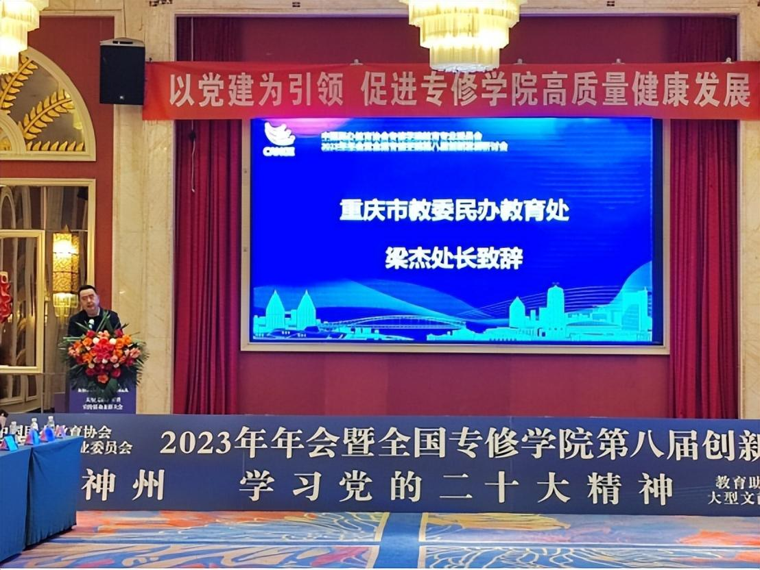 1月11日,中国民办教育协会专修学院教育专业委员会(以下简称“专修学院专委会”)2023年年会暨全国专修学院第八届创新发展研讨会在重庆哈曼酒店举行,来自全国各民办专修学院专家学者齐聚,共谋专修学院高质量发展新路。“以党建为引领,促进专修学院高质量健康发展”。本次会议由中国民办教育协会指导,中国民办教育协会专修学院教育专业委员会主办,重庆经贸管理专修学院承办。